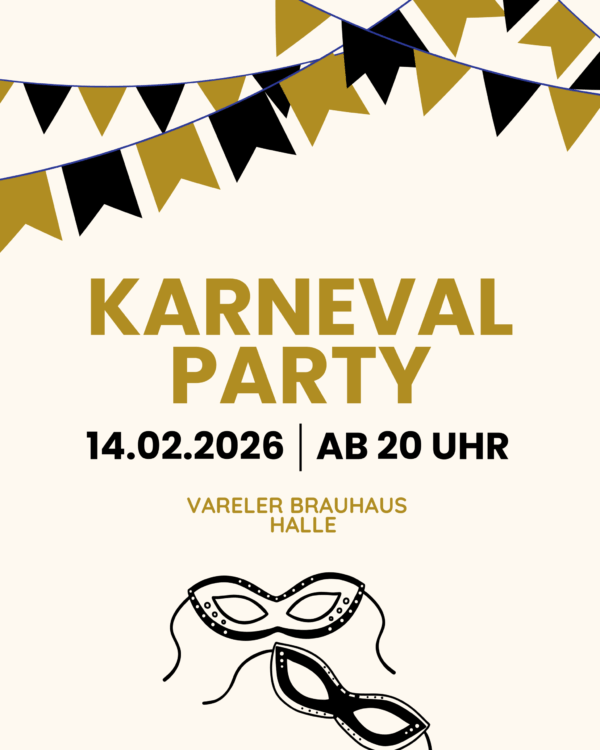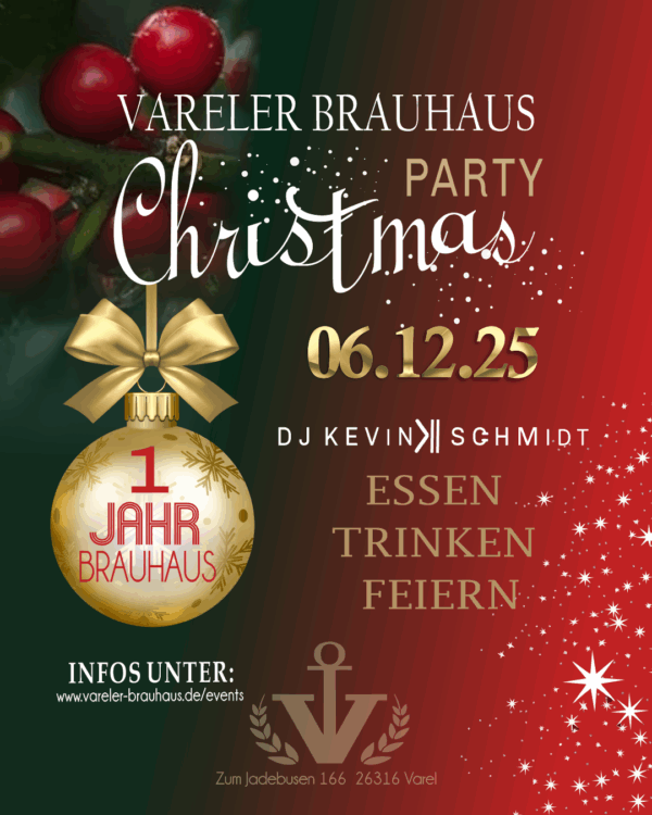 🎄 Christmas Party & 1 Jahr Brauhaus 06. Dezember 2025 – Halle im Vareler Brauhaus Feiert mit uns ein ganz besonderes Jubiläum! Wir kombinieren unsere große Christmas Party mit dem 1-jährigen Bestehen des Brauhauses – mit leckerem Buffet, kühlen Getränken und Party-Stimmung bis tief in die Nacht! 🍽️ Schnitzelbuffet – 24,90 € …